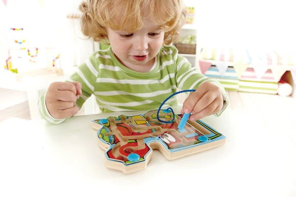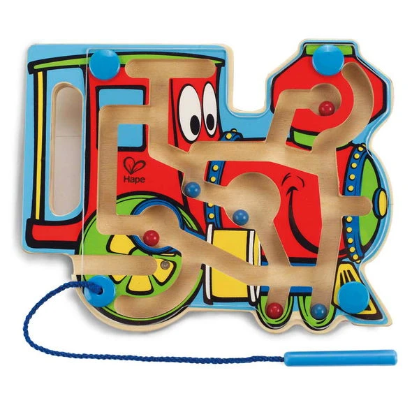 Sicher wie auf Schienen könnt ihr die Kugel mit dem Magnetstift kreuz und quer durch die Bimmelbahn bewegen. Beim Spielen mit diesem Labyrinth gibt es kein Richtig oder Falsch. Die Kugeln müssen durch das Labyrinth geführt und auf dem umgekehrten Weg wieder zurückgebracht werden.