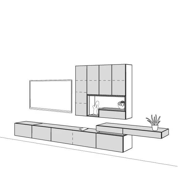 Hülsta Tetrim Wohnwand 4 – Lack-Ausführung Lowboard & Hängeelement