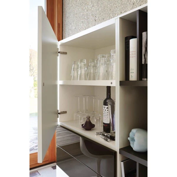 Die now! vision by hülsta Kombination 10 in Lack-weiß/Lack-Hochglanz-grau/Lack-Hochglanz-weiß/Lack-grau verfügt über offene Fächer, zwei Türen und drei Schubladen. Die now! Vision by hülsta Möbel fahren eine klare Linie und sind doch überaus wandelbar. Die Oberflächen variieren von klassischen Lack- und Hochglanzlack-Fronten über Akzentausführungen bis hin zu hochwertigen Furnieren.