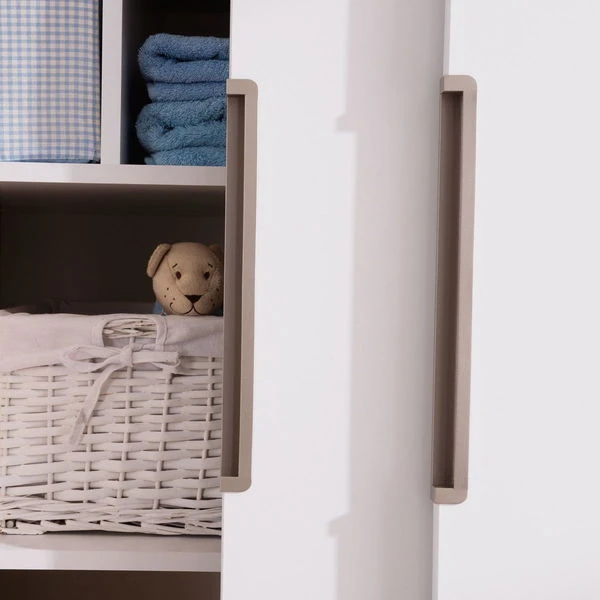 Der Paidi Fionn/Remo Kleiderschrank in kreideweiß und warmer Eiche-Bordeaux-Nachbildung trifft den modernen Zeitgeist. Er kann mit den Paidi-Möbelserien Fionn und Remo kombiniert werden. Die innovativen Schiebetüren des Kleiderschranks fahren komplett hintereinander durch, wodurch jeder Winkel des Schranks erreicht werden kann. Durch den Einsatz der Schiebetüren kann ein individueller Look erzeugt werden.