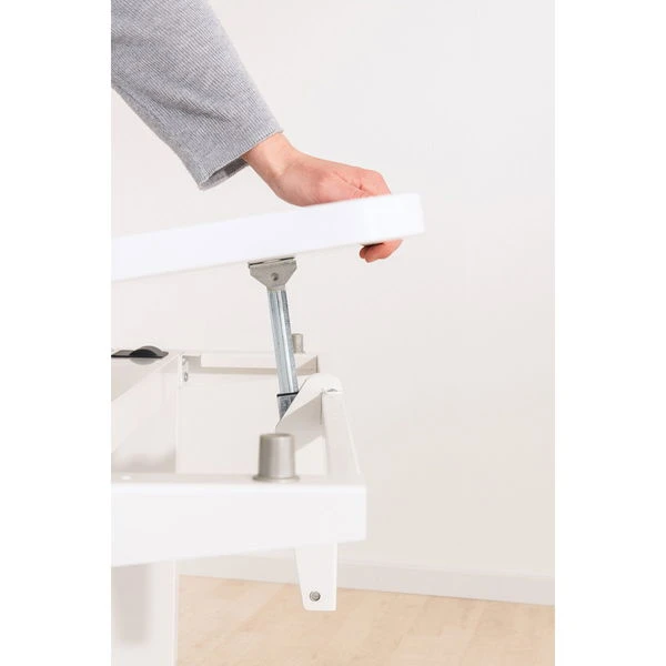 - Schreibtischplatte geteilt in eine neigungsfähige Hauptplatte (90 cm) und einen fest stehenden Teil (37,5 cm)