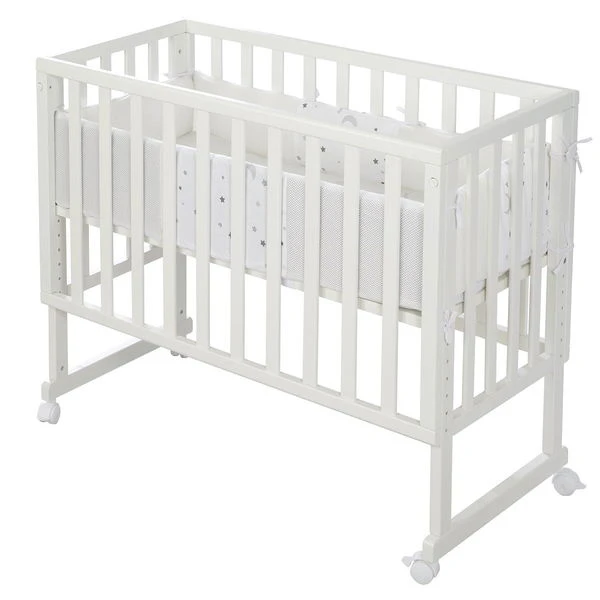 Das Roba Stubenbett 3 in 1 stellt einen idealen Begleiter für die ersten Monate dar. Durch die abnehmbare Gitterseite lässt sich das Stubenbett einerseits als praktisches Beistellbett am Elternbett nutzen und andererseits machen es die vier mitgelieferten Bremsrollen zum mobilen Stubenwagen oder Babybett. Die Komplettausstattung mit Matratze und Nestchen lässt keine Wünsche offen.