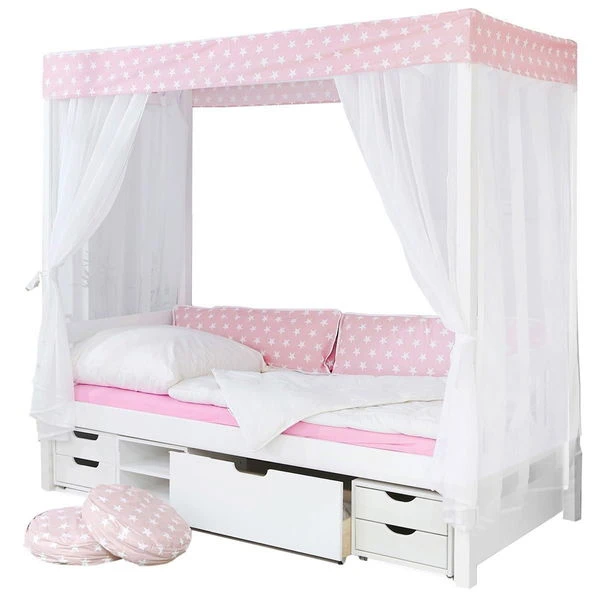 Dieses schöne Ticaa Himmelbett Stern Rosa kann optisch absolut überzeugen. Stabilität und Verarbeitung gewähren Ihnen lange Freude an diesem Bett und süße Träume.