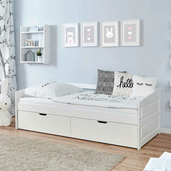 Ticaa Sofabett MINI Micki mit 2er Schubkästen Buche weiß – 80×160 cm