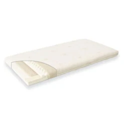 Der Matratzenbezug aus 100 % KBA-Bio-Baumwolle aus kontrolliert biologischem Anbau ist luftdurchlässig, waschbar bis 40 °C und für den Schontrockner geeignet.