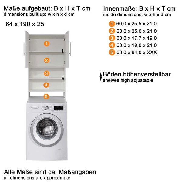 - Maße B/H/T: 64 / 190 / 25 cm
